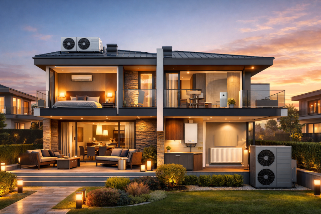Meet all your heating and cooling needs in one place, from residential homes to large commercial spaces. Our range of boilers, heat pumps, radiators, and air conditioners ensures reliable comfort year-round.